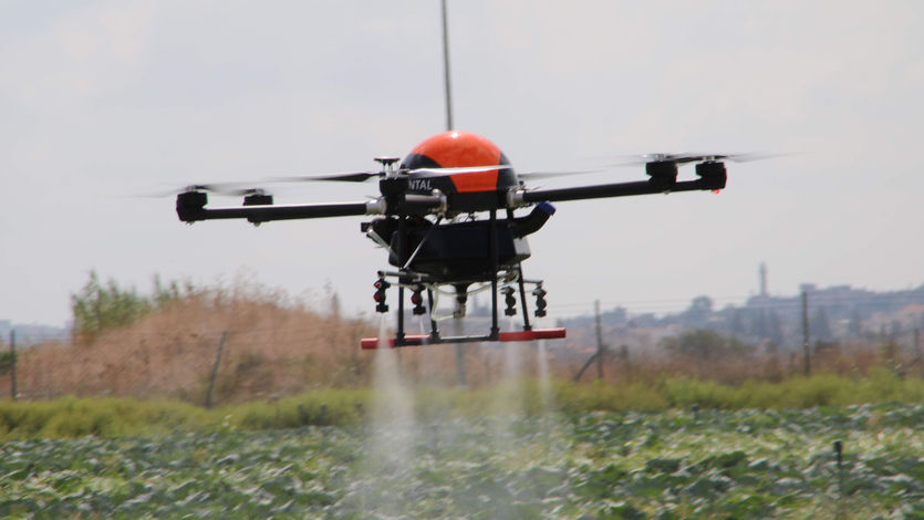 ריסוס שטחים חקלאיים גדולים באמצעות רחפן